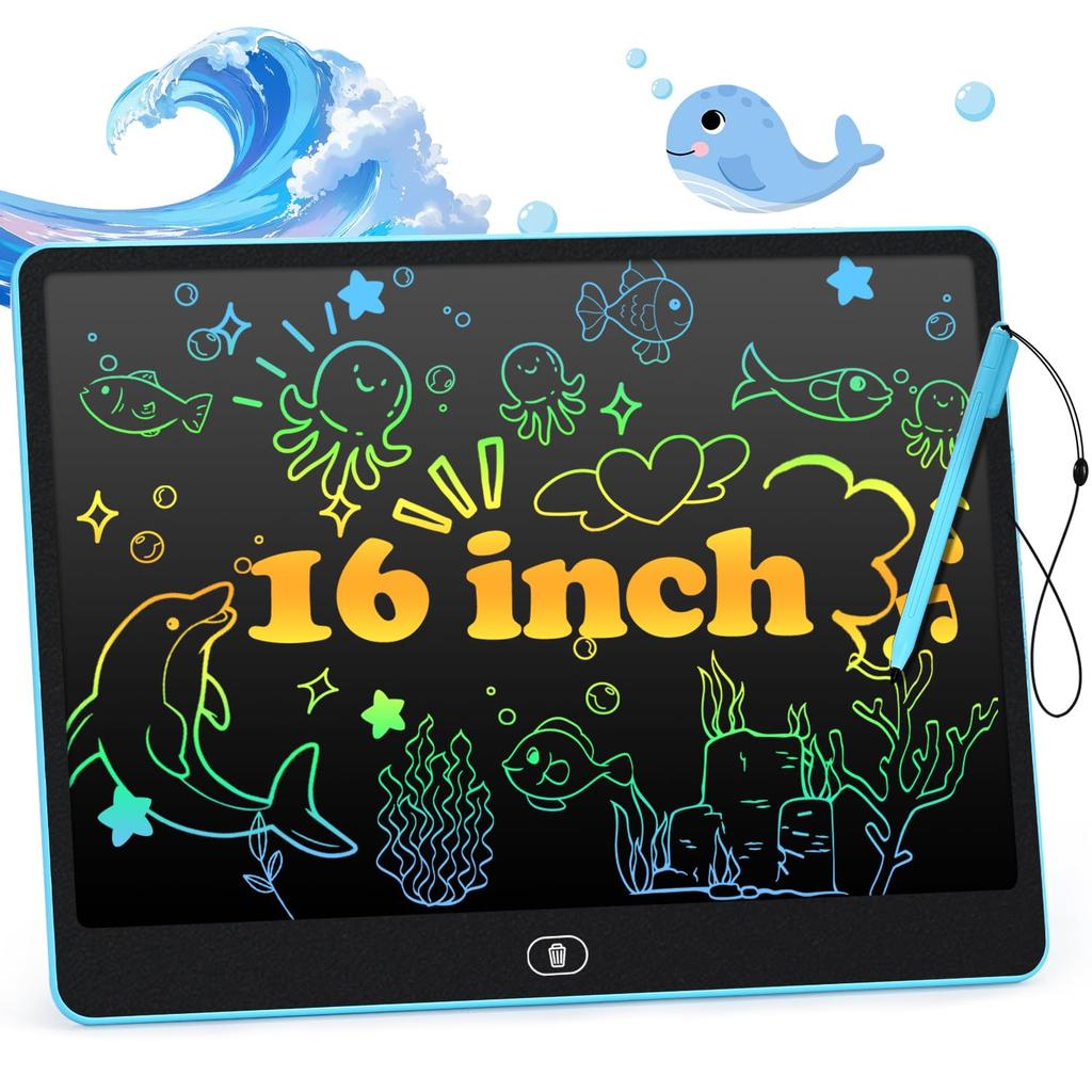 Tablet LCD de 16 polegadas para Crianças, Quadro de Rabiscos, Bloco de Desenho, Essencial para Viagem para Crianças Pequenas de 3 a 10 Anos, Brinquedo para Carro, Brinquedo de Avião, Presente de Aniversário para Meninos e Meninas