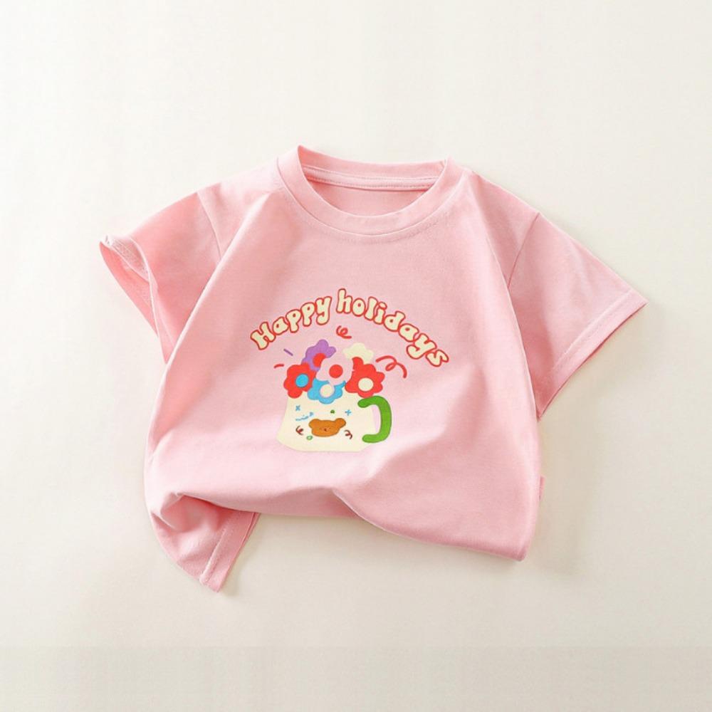 Girl's T-shirt shirt cartoon flower design beautiful short sleeved cool baby girl