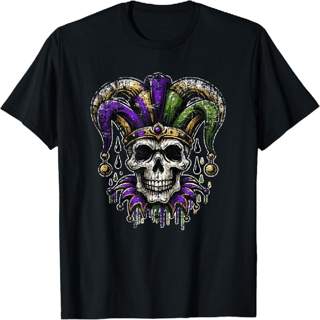 Vintage Retro Mardi Gras Jester Skull NOLA New Orleans T-Shirt
