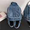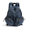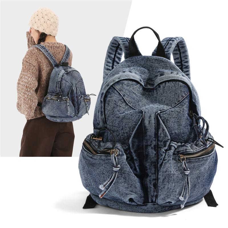 Denim Backpack Women's Fashionable Casual School Bag Trendy Rucksack with Drawstring Pockets