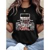 European Size Womens Graphic Print T Shirt Short Sleeve Crew Neck Casual Top Spring Summer Wear