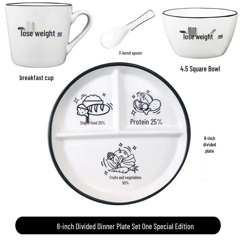 Prato de Refeição Cerâmico Nierxin com 3 Compartimentos para Controle de Porções