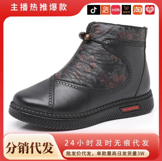 Cotton shoes women's winter models, old Beijing velvet thickened middle-aged and elderly mother shoes, waterproof, non-slip and warm snow boots