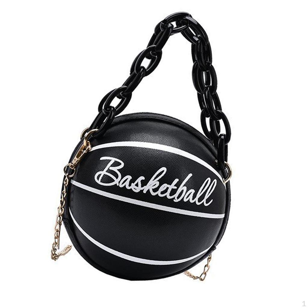 Fashion Women Basketball Bag PU Leather Chain Round Graphic Tote for Gift Shopping Ladies