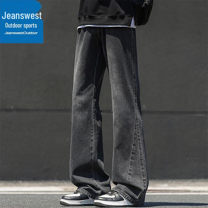 Zhenweis Men's High Street Elastic Waist Straight-Leg Bootcut Jeans