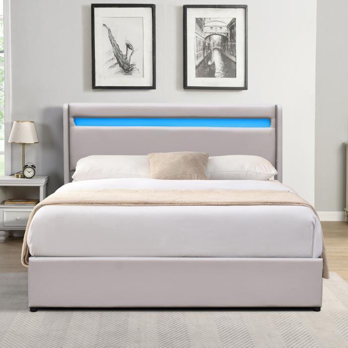 Lit coffre 140x200 - KING OF DREAMS - Dehoussable - Tête de lit LED - Montage rapide - PVC simili