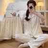 Indulge in comfort and style with this women's summer loungewear set, featuring a playful leopard print and love heart design. This three-piece pajama set is crafted from cloud cotton for the parts touching the skin, offering a soft and gentle feel, while durable polyester ensures longevity. The set includes a short-sleeve top and coordinating pajama bottoms, perfect for staying cool and stylish during warmer nights. Ideal for lounging at home or relaxed sleep, this set combines fun design with luxurious comfort.