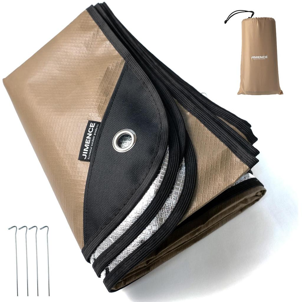 Lona de Chão Impermeável de Alumínio JIMENCE, 150 x 210 cm, com Saco de Armazenamento, para 1-3 Pessoas (Bege)