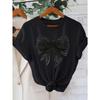 European Size Fashion Bow Print Women's Round Neck T-shirt, Simple Design, Comfortable And Fashionable, Versatile Must-have, Suitable for Daily Leisur