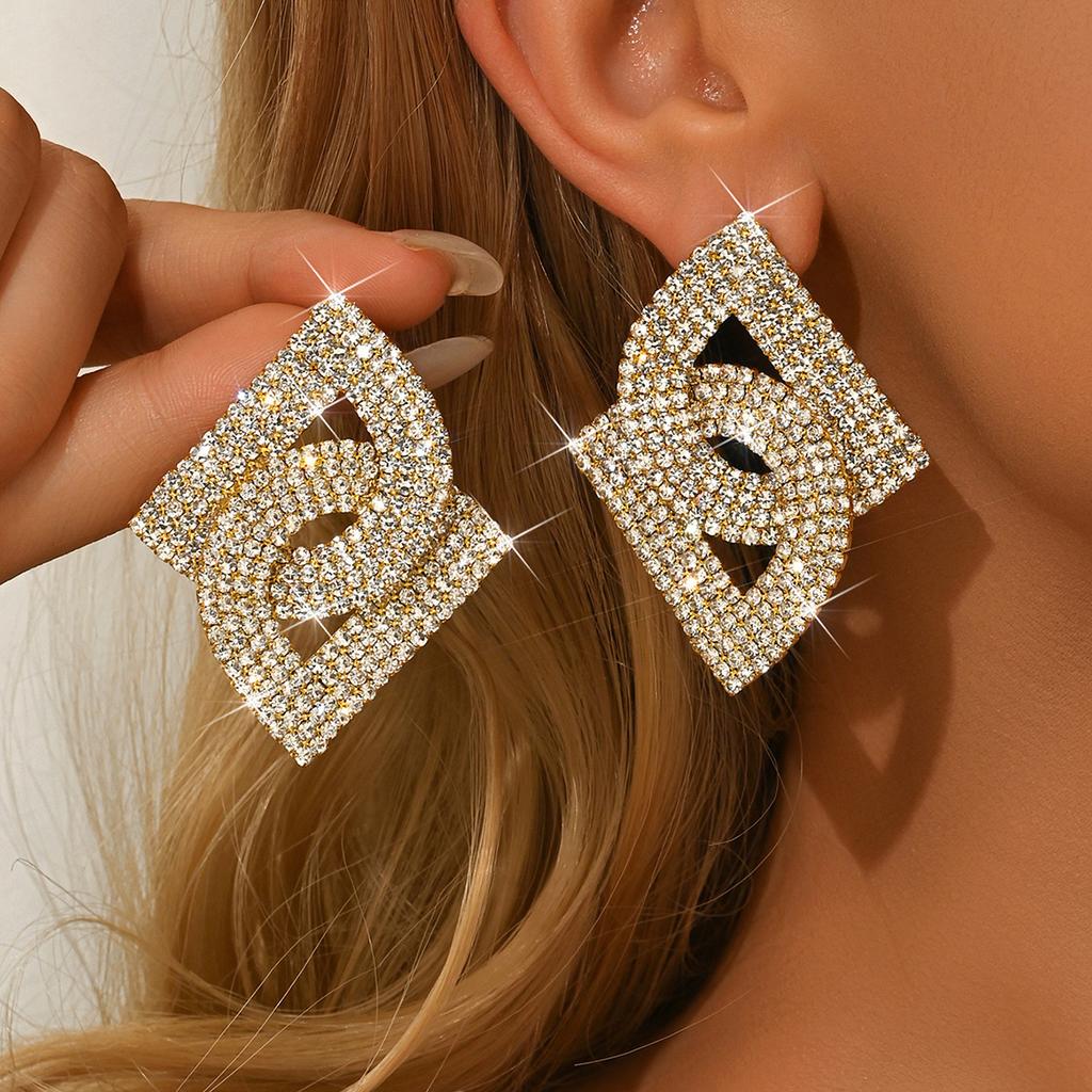 Fashion Exaggerated Diamond-Set Letter D Stud Earrings Retro Niche Light Luxury High-End Temperament Fashion Earrings Women