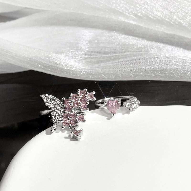 Pink Zircon Love Open Ring Fashion Light Luxury High-End Index Finger Ring Niche Design Personalized Accessories
