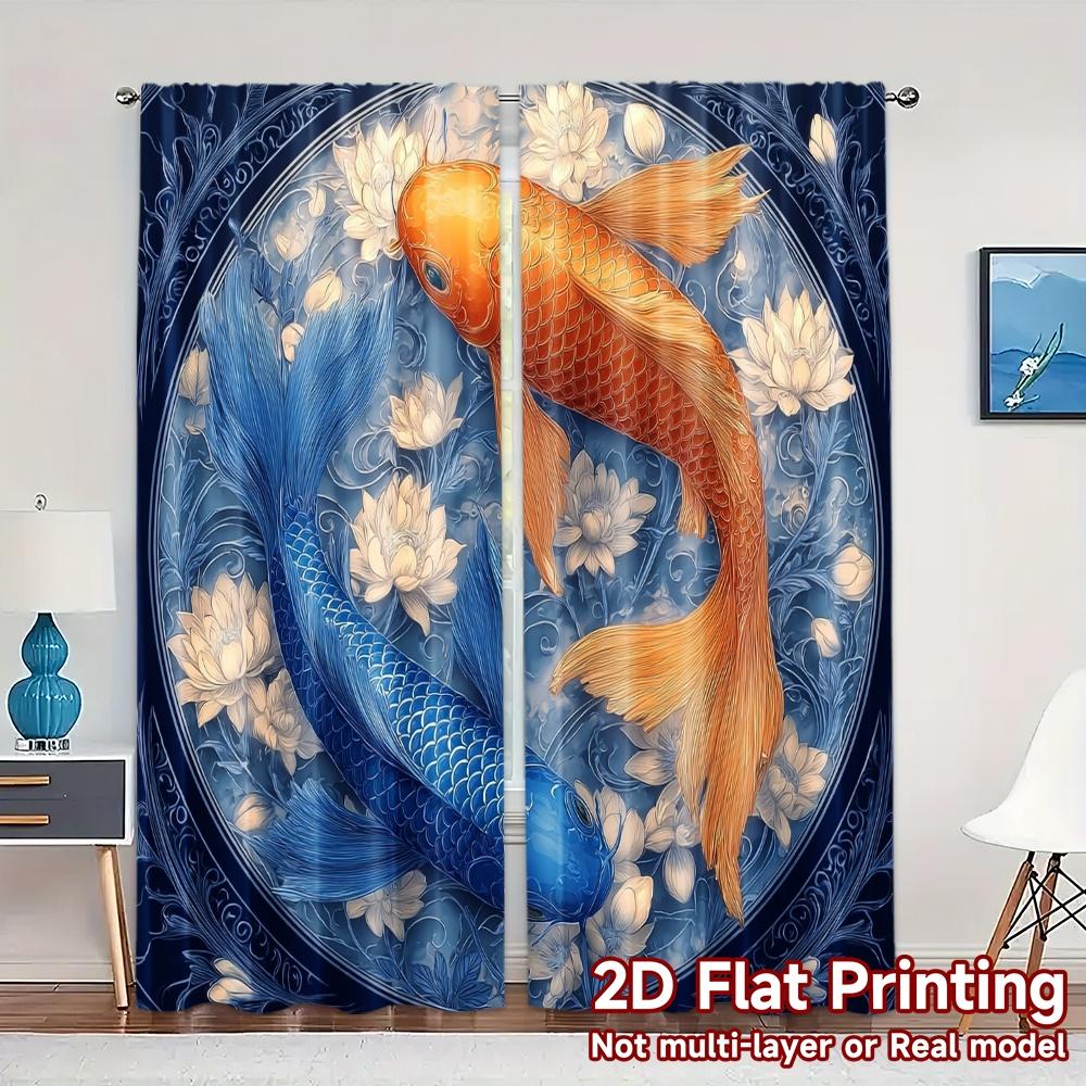 2pcs 2D FLAT PRINTING Curtains (Without Rod) YinYang Koi Chic Curtain Cloth Versatile 100% Polyester Curtains All Seasons
