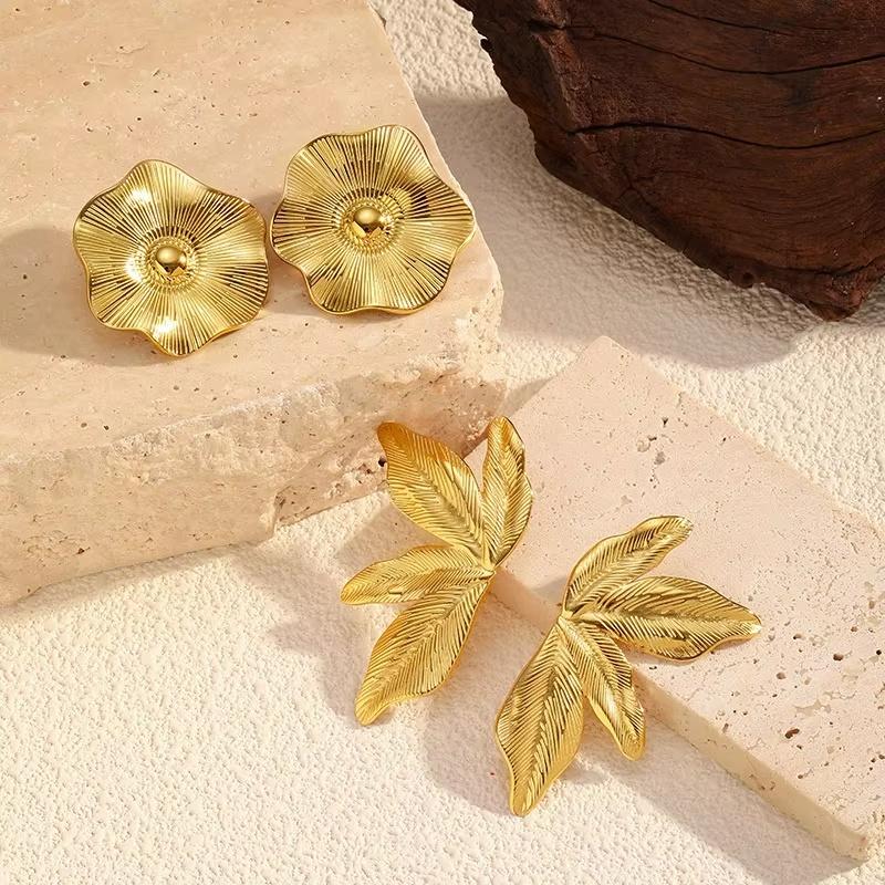 Fashion Classic Geometric Texture Leaf Flower Earrings Trendy Stainless Steel Stud Earrings Daily Wear Party Gift Woman