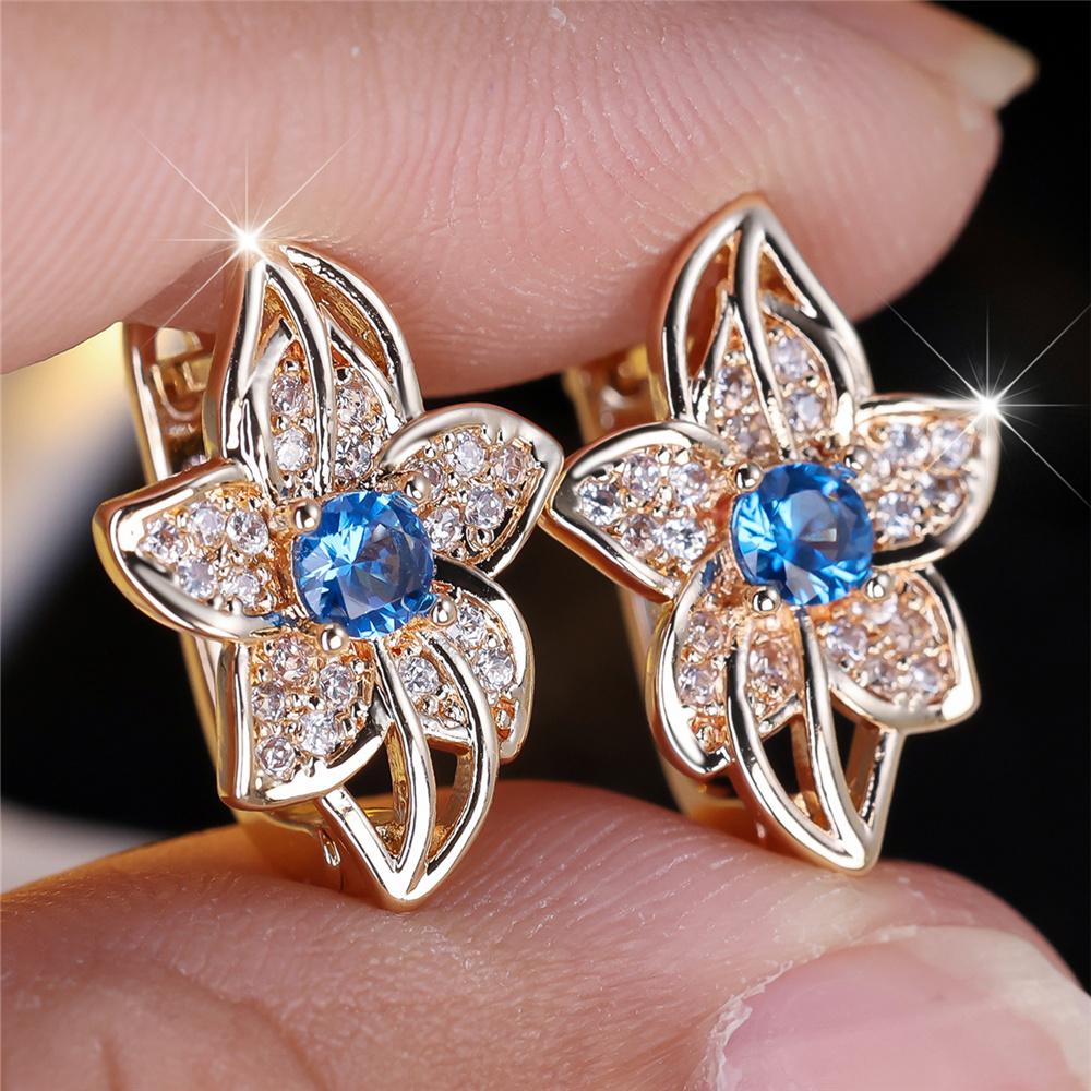 Cute Water Blue Red Zircon Hoop Earrings Female Luxury Crystal Rose Gold Color Wedding For Women