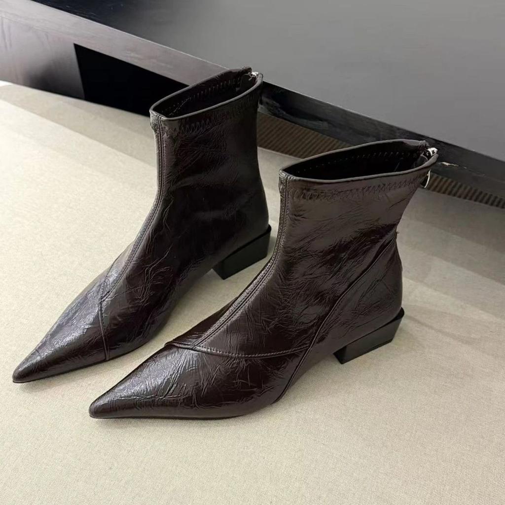 French retro high-end fashion short boots winter versatile temperament thin boots pointed thick heel short boots
