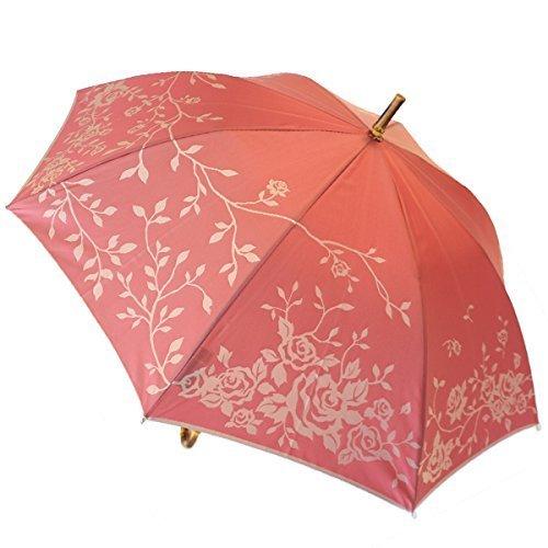 High-quality Koshu-woven women's long umbrella "kirie" in rose. Made in Japan. From Makita Shoten.