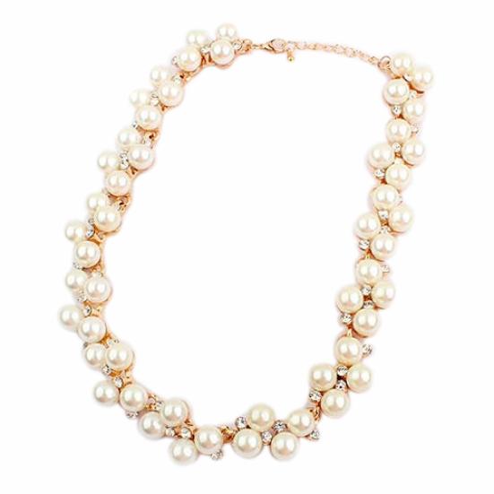 Elegant Lady Faux Pearls Shiny Rhinestone Collar Necklace Valentine's Day Gift