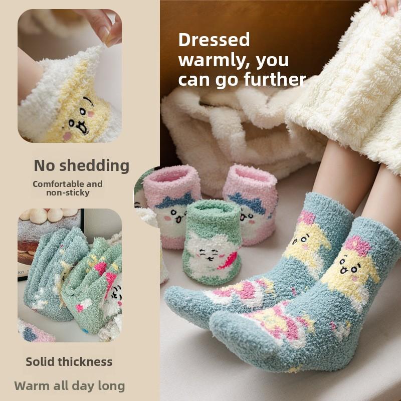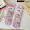 Winter and Autumn Thick Sleeping Coral Fleece Socks for Women, Postpartum Floor Mid-calf Socks with Cartoon Embroidery