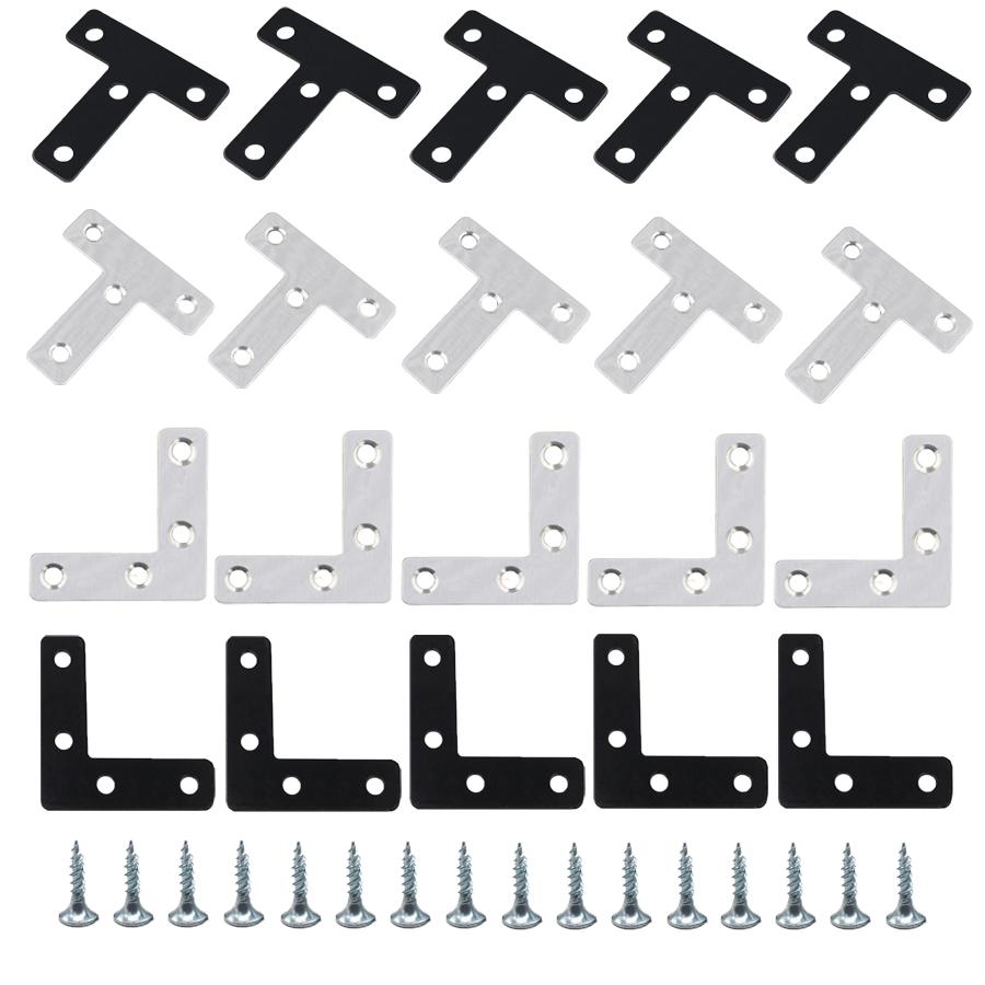Black and silver T/L 1.96in stainless steel corner codes, shape corner brackets, brackets, wardrobe fixing connectors for shelve