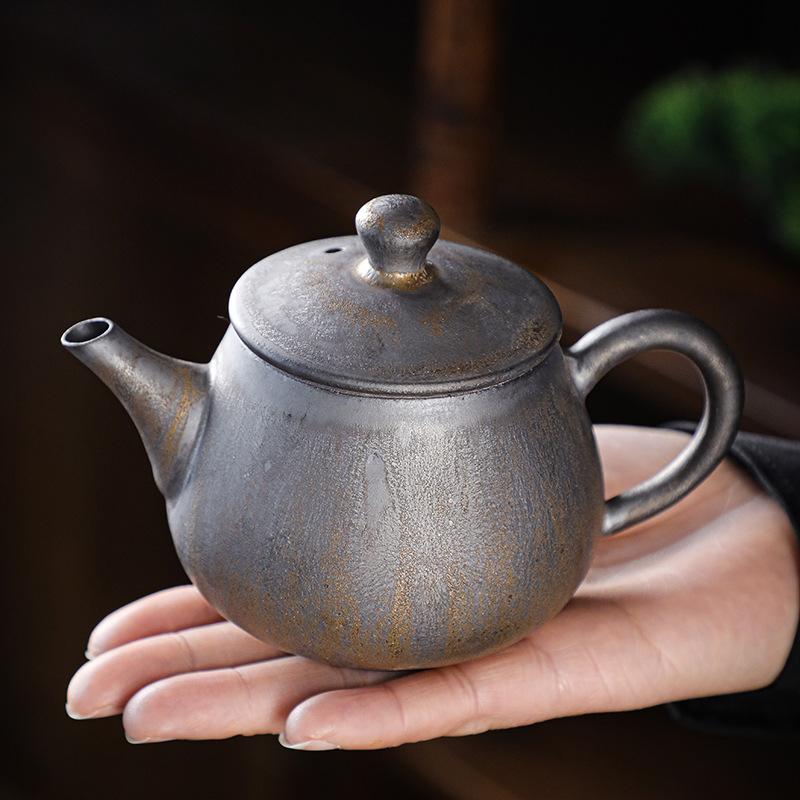 Coarse pottery teapot single pot household Japanese retro kiln change gilt rust glaze ceramic kung fu tea set tea side pot