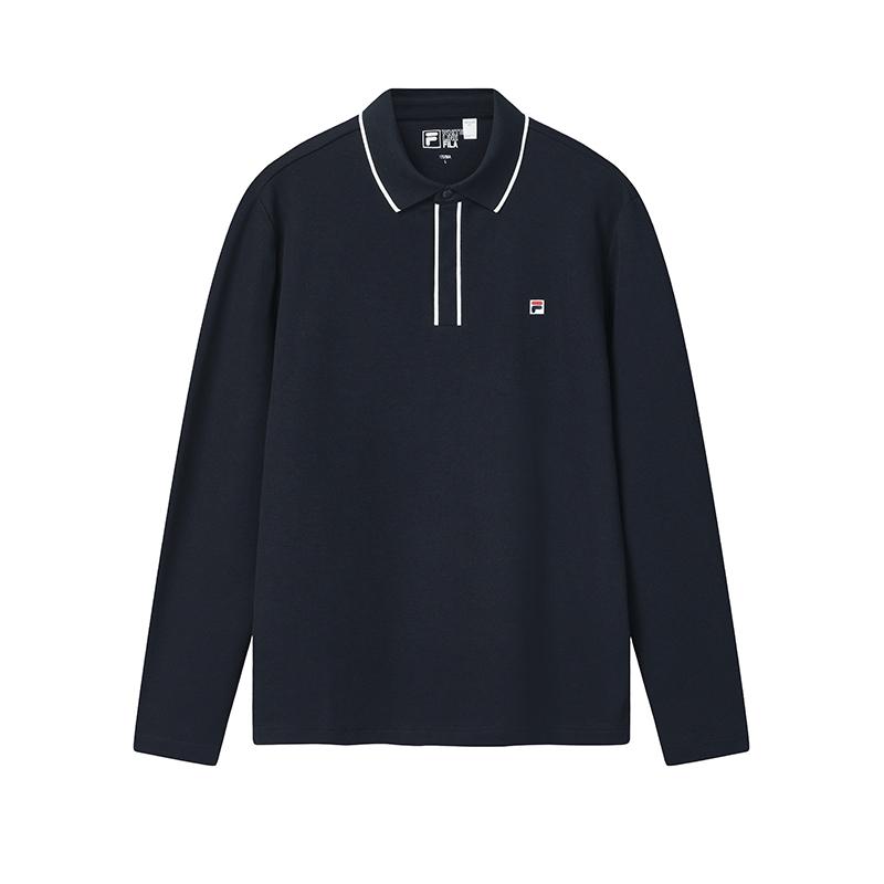 FILA Heritage Elite Classic Simple Fashion Casual Comfortable Versatile Knitted Long Sleeve Polo Shirt Men tops Legendary-Blue F11M618206FNV