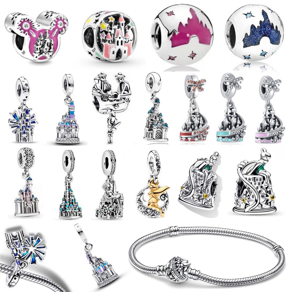 Miniso Disney Flower Fairy Castle Bow Charm Silver 925 Fine Jewelry For Women Original Bracelet Beads New