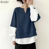 ZANZEA Women Casual See-Through Loose 3/4 Sleeve Hoodies Cover Up Blouse