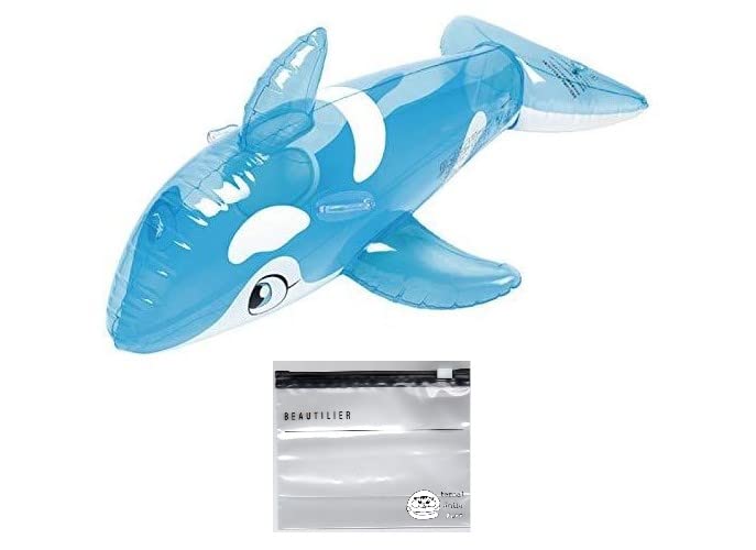 Mini Killer Whale Float, Inflatable Ring, Easy Air Valve, Killer Whale, Blue, 130 x 83 cm, Set (Float, Slider Bag)