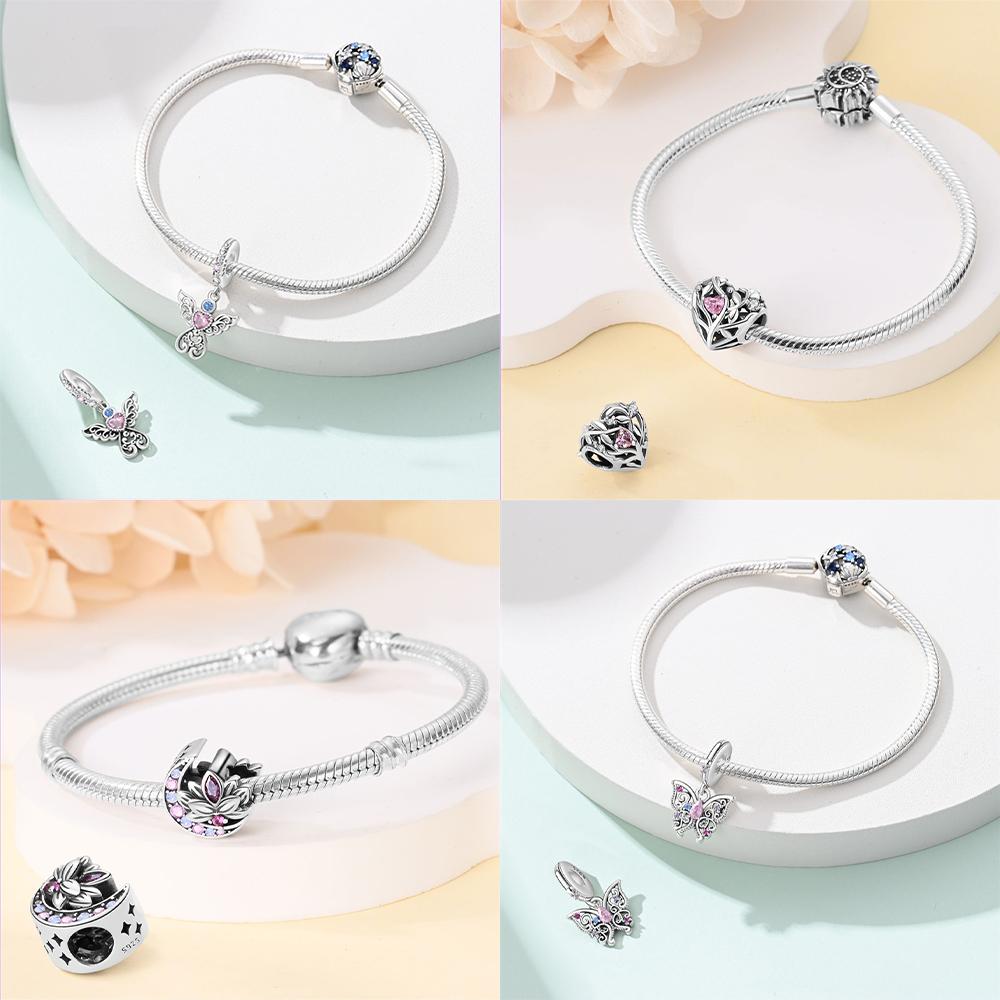Heart Zircon Charms Original Classic Copper Plated Lotus Angel Beads Fitbracelets Women Diy Jewelry Fine Gifts Jewelry