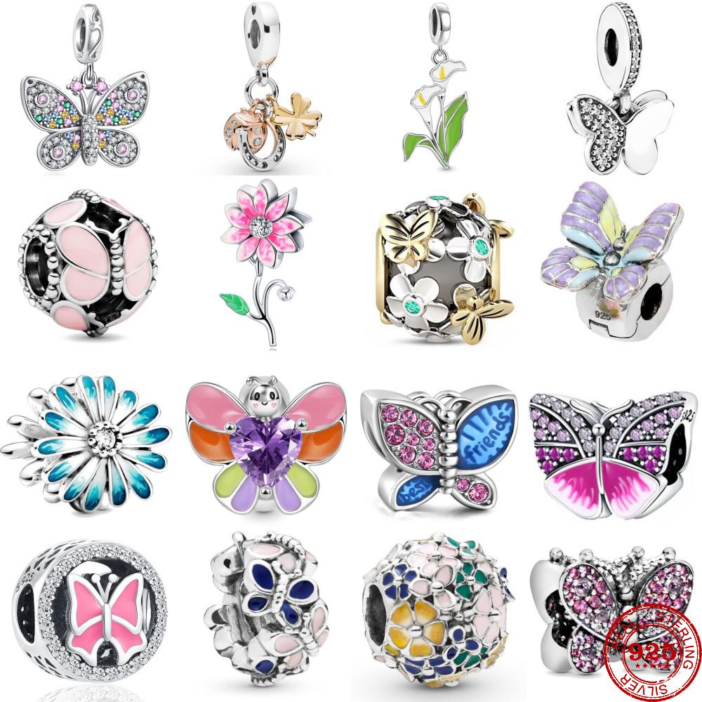 New Copper Spring Butterfly Pendans Hang Beads Diy Fit Original Pendant Charm Bracelet Necklace Women Jewelry