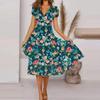 Women's Summer Casual Fashion Floral Print Short Sleeve V-Neck Swing Dress