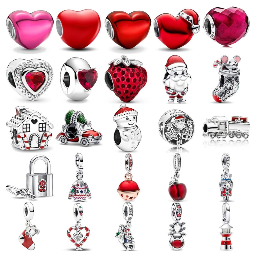 New Authenticcopper Apple Original Charm Red Love Strawberry Beads Pendant Fit Bracelet Jewelry Couple'S Anniversary Gift