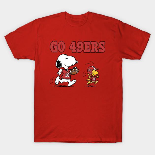 Men Black Print T-shirt Go 49Ers – Snoopy &Amp; Woodstock Football No-Cut Transfer Paper Print Cotton Tshirt