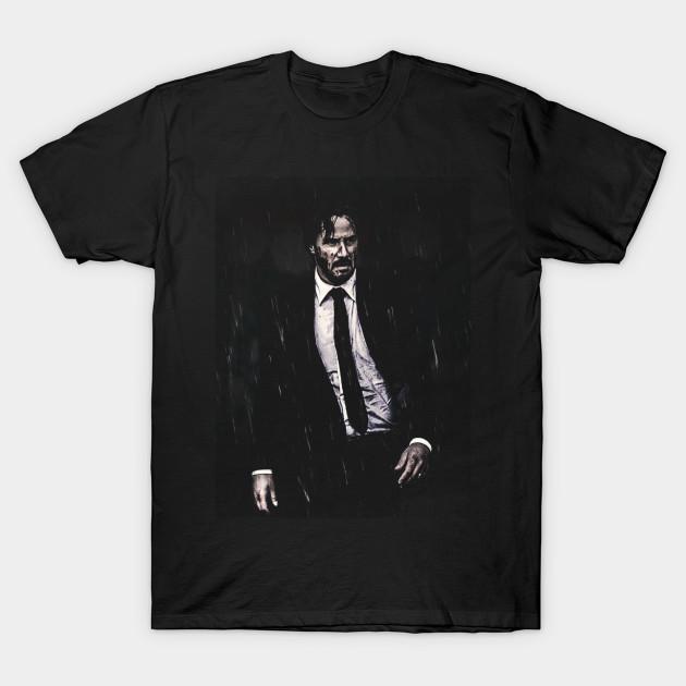 Men Black Print T-shirt John Wick Minimal No-Cut Transfer Paper Print Cotton Tshirt