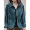 Primavera Outono Novo Vintage Solto Casual Camisa de Veludo Cotelê Feminina Bolso Moda Versátil Cardigã Top Mulheres Blusa de Manga Comprida Femme
