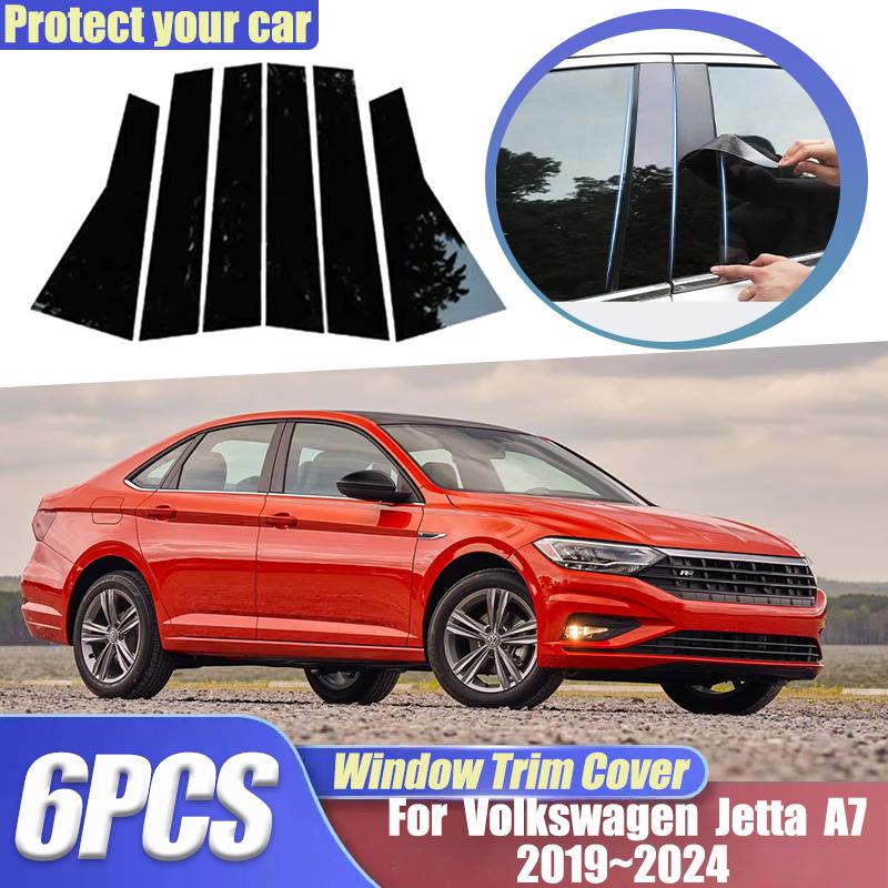 Para VW Volkswagen Jetta A7 Acessórios GLI ~2024 6 Peças Capas de Acabamento de Janela Colunas B C Coluna Central Adesivos Acessórios