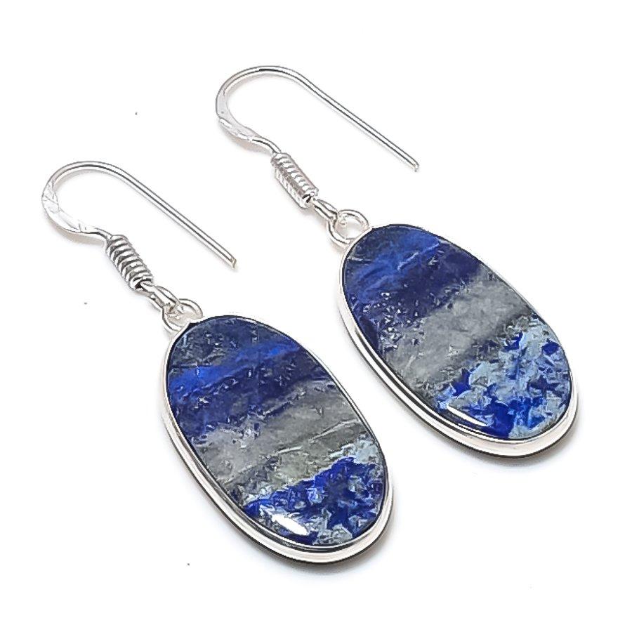 Natural Lapis Lazuli Gemstone 925 Sterling Silver Jewelry Earring 1.77"