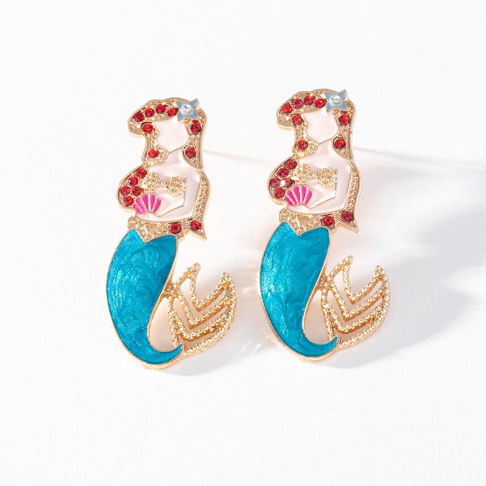 Pinkdudu Mermaid Enamel Earrings Whimsical Shell & Red Crystal Drops Hand-Painted Fairy Tale Jewelry PD1475