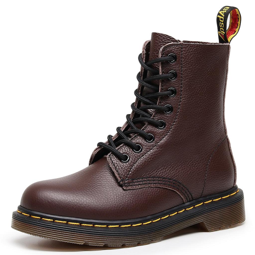 Botas cargo padrão lichia 1460 feminino camada superior couro bovino macio botas de casal couro genuíno britânico botas de motocicleta bico redondo tendência