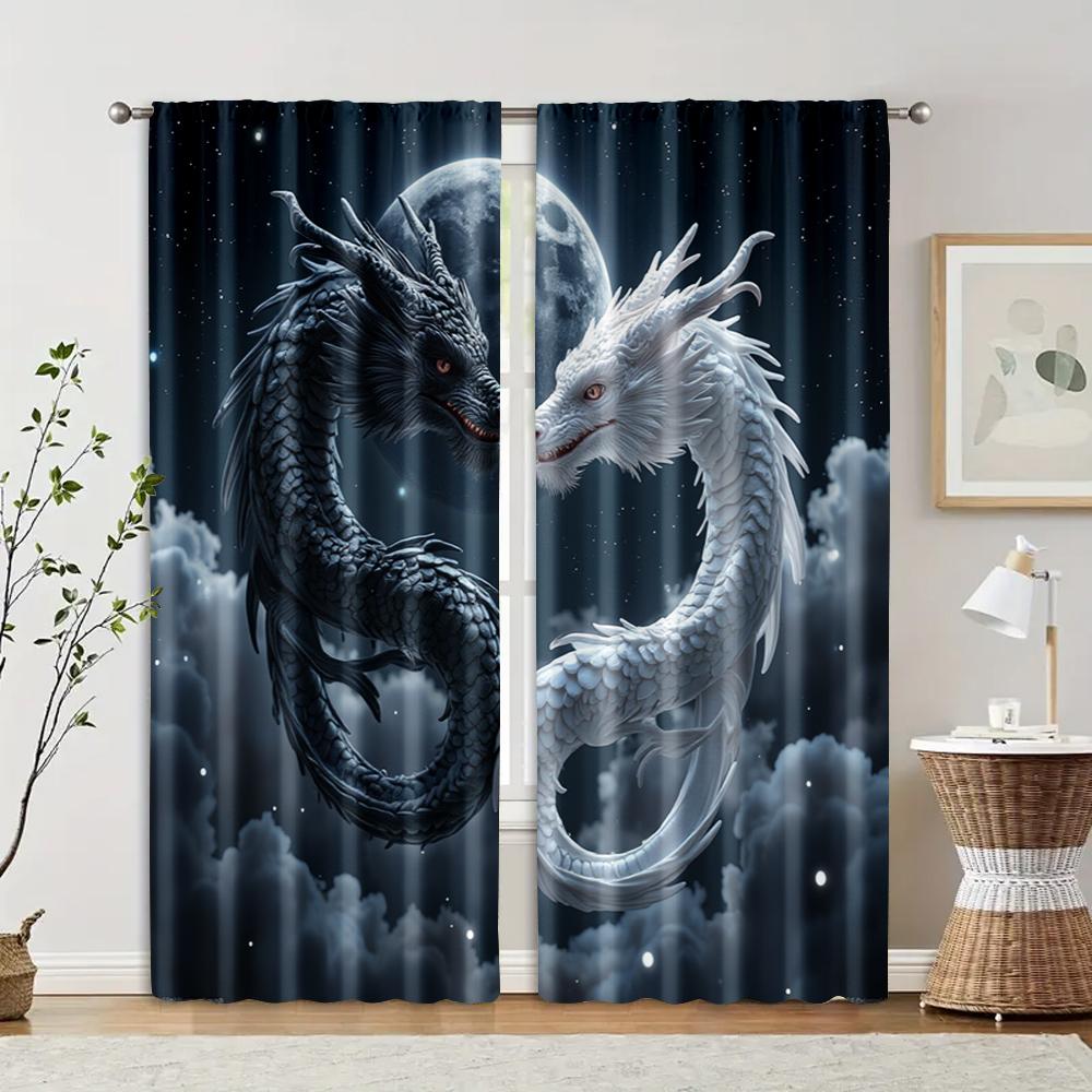 2 pcs filtering curtains (excluding rods non-movable without batteries) Dual Dragon_00016 for use in bedrooms and living