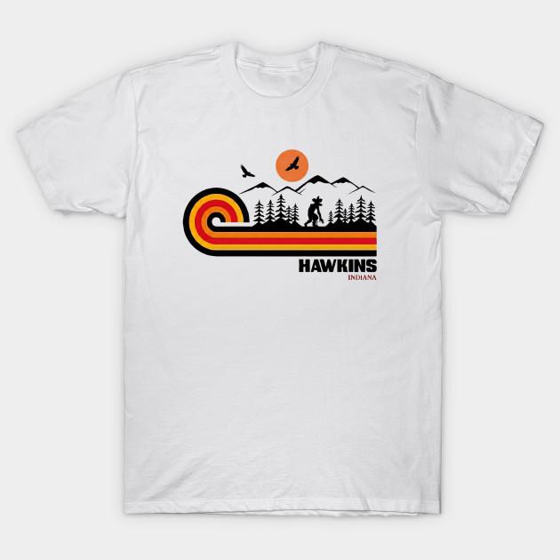 Men Black Print T-shirt Visit Hawkins Retro 70S Vibe No-Cut Transfer Paper Print Cotton Tshirt