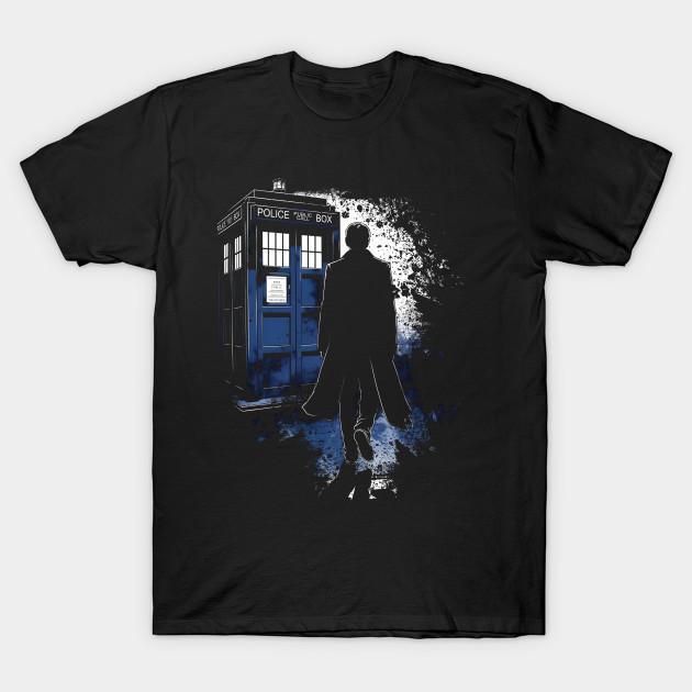 Men Black Print T-shirt The 10Th Doctor & The Tardis No-Cut Transfer Paper Print Cotton Tshirt