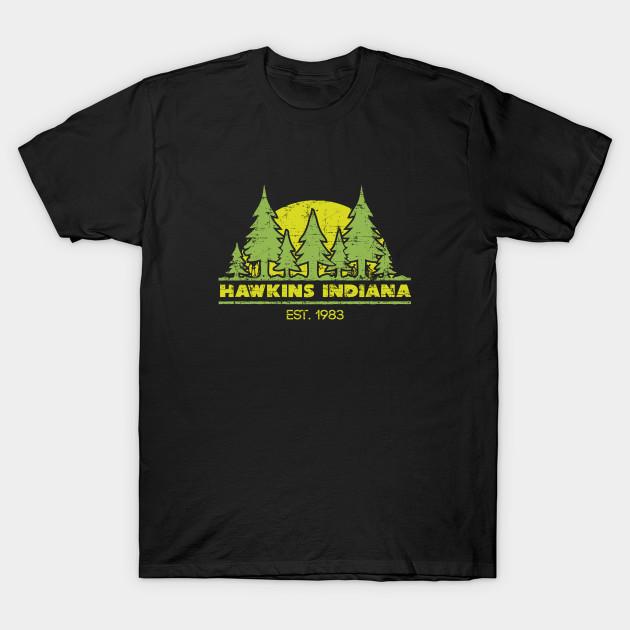 Men Black Print T-shirt Hawkins Indiana No-Cut Transfer Paper Print Cotton Tshirt