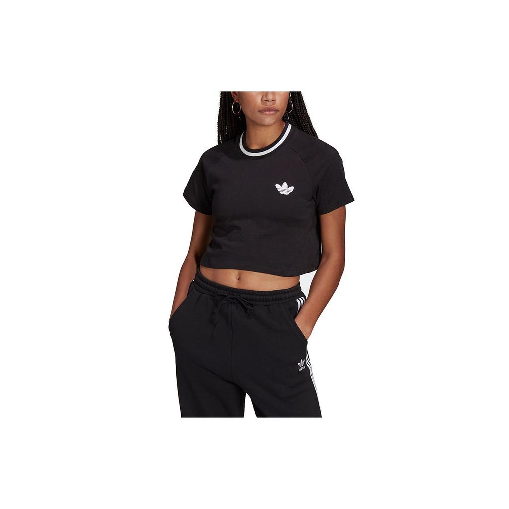 Adidas Originals Cropped Tee Flocked Embroidered Logo Sports T-Shirt Women Tops Black H20253