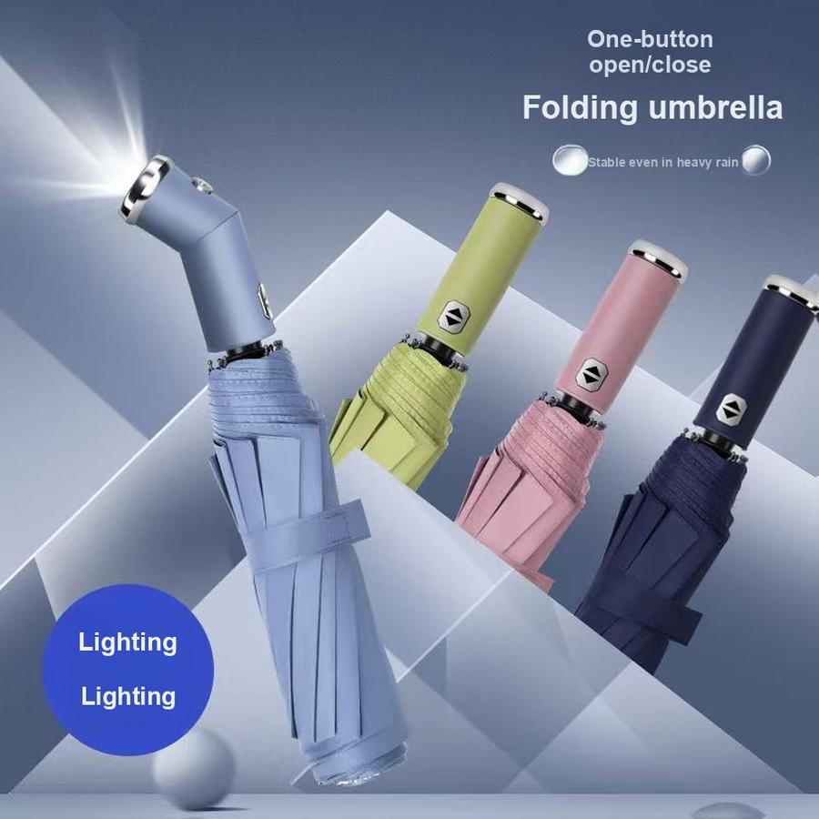 Novo Guarda-chuva com Lanterna LED Combo Guarda-chuva Dobrável Multifuncional com Luz Forte, à Prova de Vento e Protetor Solar - Fábrica