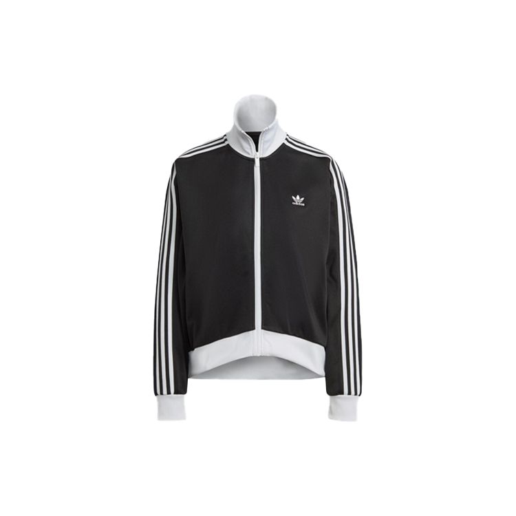 Adidas Originals Adicolor Three-Stripe Color Block Loose Fit Stand Collar Long Sleeve Jacket Women Jackets Black IK0430