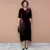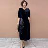 High-end Autumn Winter Retro Women's Velvet Plus-Size Dress V-neck Rhinestone Loose Long A-Line Casual Dress