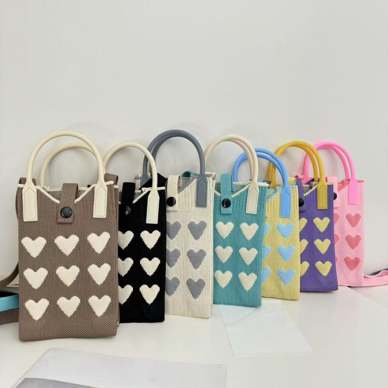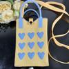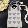 1 Peça Meninas Fofo Bolsas Transversais Ao Ar Livre Coreanas Mini Bolsa de Mão Quadrada Tricotada em Coração Para Mulheres Pequena Bolsa de Ombro para Celular