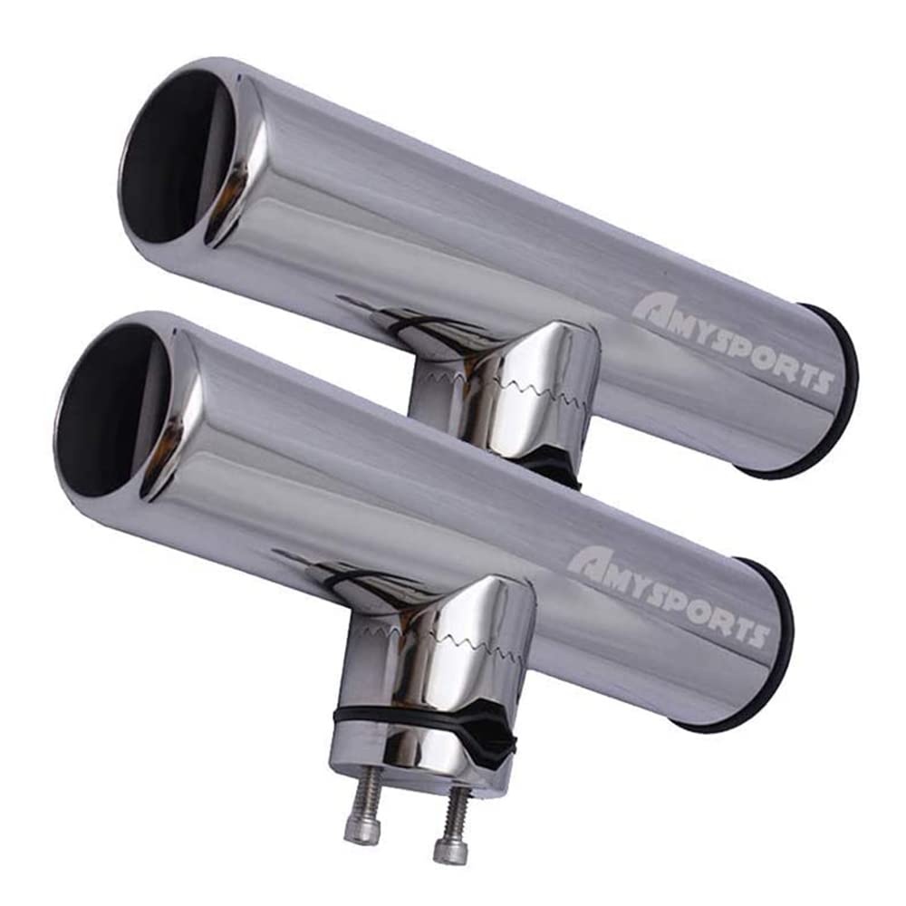 AMYSPORTS Rod Holder, Stainless Steel Clamp-On Rod Holder for Boats, Fits Rails from 19mm to 25mm, 2-Piece Set