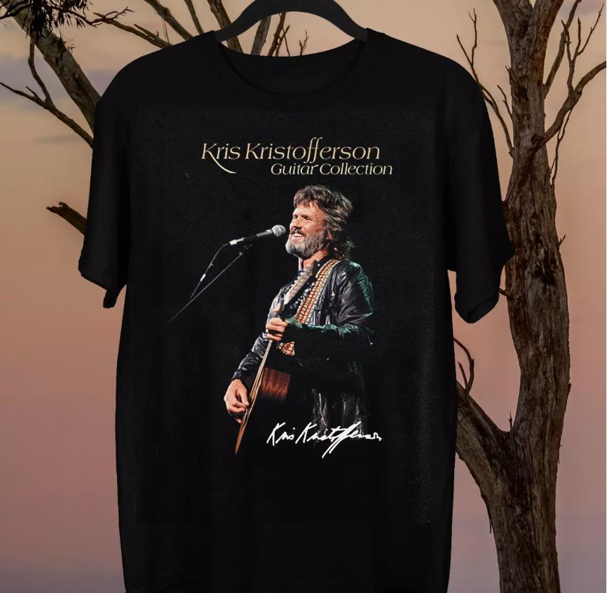 Nova Camiseta Preta de Manga Curta com Guitarra Kris Kristofferson Todos os Tamanhos Unissex